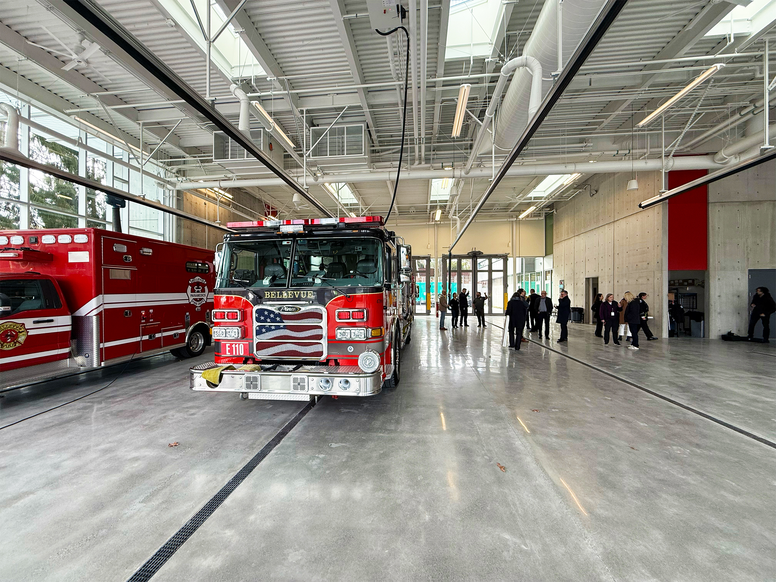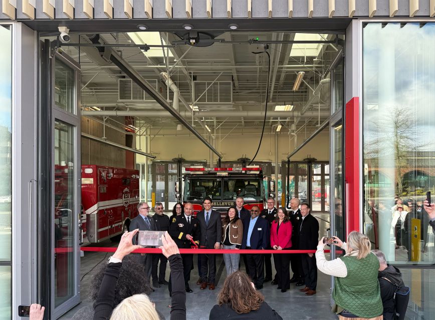 The City of Bellevue recently hosted a ribbon cutting for Fire Station 10, marking the completion of the city’s first new fire station in nearly three decades. Invited guests and project team members celebrated an important milestone for Bellevue and explored the new facility, which will serve as the primary emergency response hub for Northwest Bellevue, downtown, and BelRed. The fire station will house 14 emergency responders on 48-hour shifts and features live/work accommodations that include a kitchen and dining area, fitness room, and bunk rooms, alongside a fire command center and offices. Designed with community connection in mind, Fire Station 10 features a publicly accessible training classroom and gallery entry featuring artifacts from Bellevue Fire’s history.