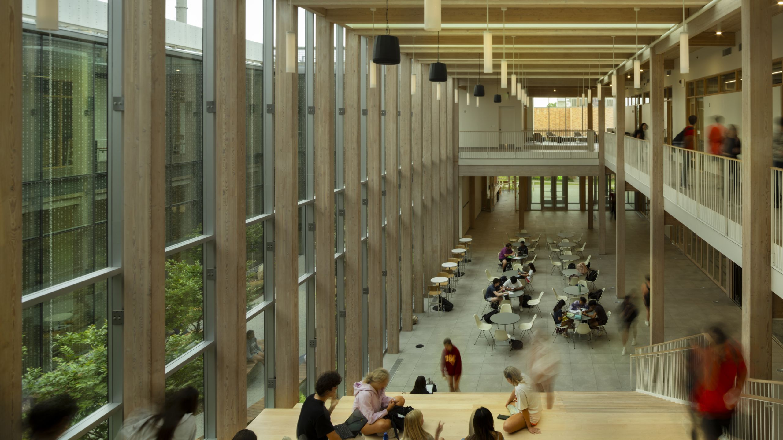 The early selection and use of mass timber as the structure and primary material of the Valdes STEM + Innovation Center was critical to helping the project achieve long-term social, economic, and environmental value. A glulam frame and cross-laminated timber (CLT) floor and roof slabs, used without additional finishes, establish a highly visible strategy for carbon reduction, while providing a warm, natural framework throughout classrooms, offices, and gathering areas.