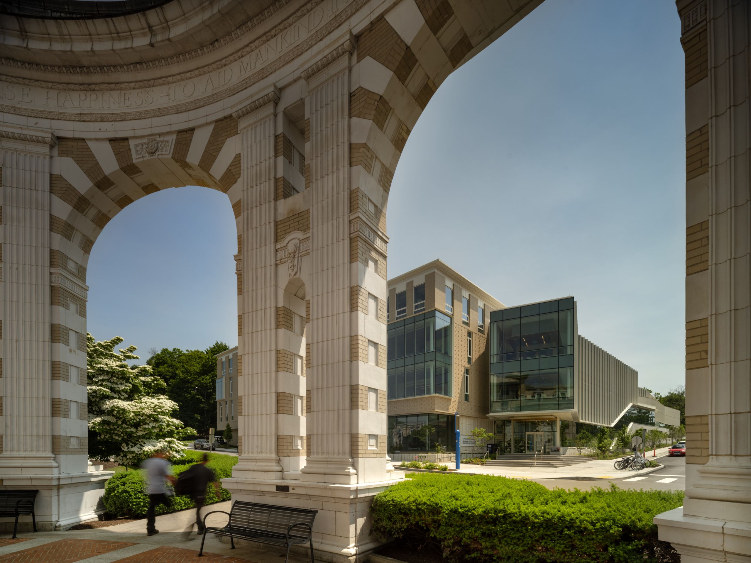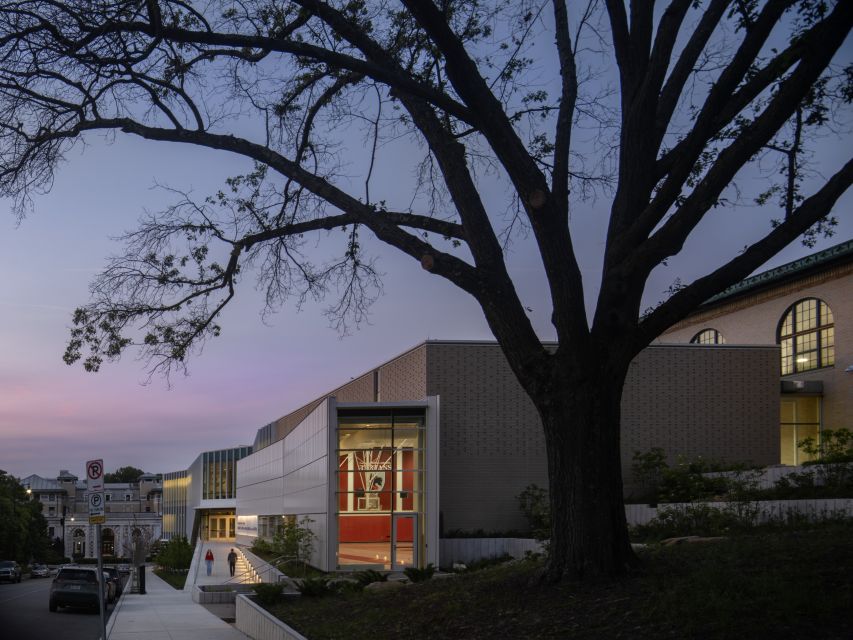 The Highmark Center is positioned at the southern campus entrance along the border of Schenley Park, presenting an inviting “front door” that connects with the surrounding natural context and puts wellness on display. The project restores and integrates the historic 1923 Skibo Gymnasium with a design that respects the beloved Henry Hornbostel-designed structure, with a complementary material palette and a fine-tuned sense of scale and proportion. Abundant, flexible spaces for student life range from public and extroverted, like the cascading Tech Street concourse, to quiet and contemplative, like the interior wellness garden and interfaith room—a program as diverse as the student body it serves.