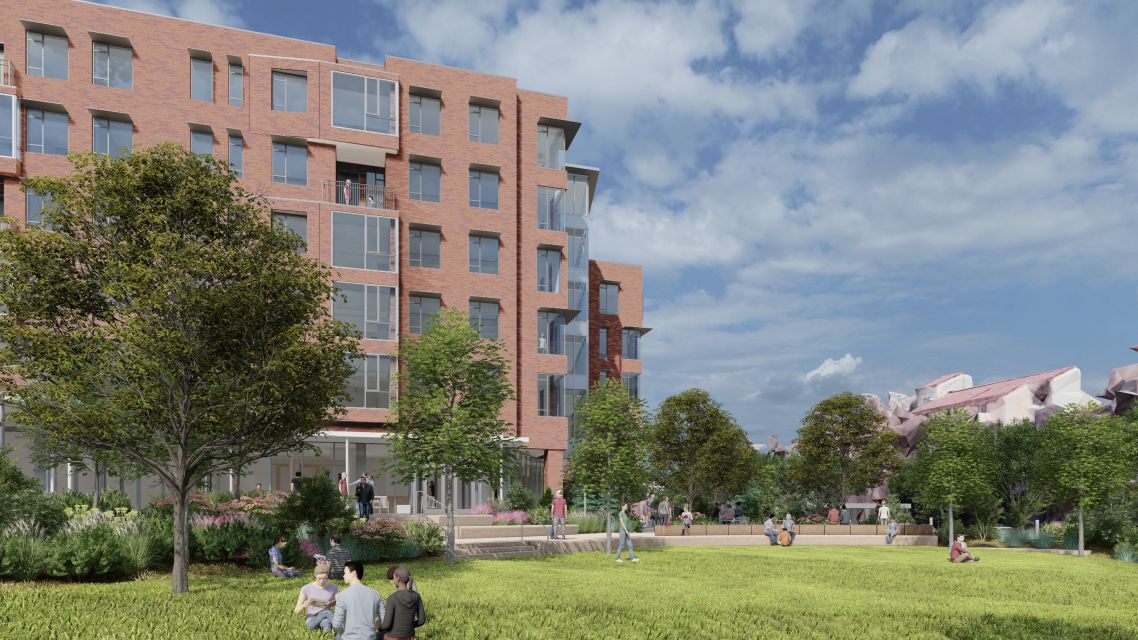 Bohlin Cywinski Jackson, in association with Anderson Mason Dale, is working with the University of Colorado Boulder (CU) to design its newest residential building. Initially identified in CU’s North Boulder Creek (NBC) Campus Master Plan, Residence One will define the unique character of the district while relating to the main campus context. The facade’s variegated red brick palette will reflect existing campus buildings and complement Boulder’s iconic Flatirons––five towering sandstone peaks that serve as a natural backdrop to campus. The NBC district sits within a floodplain along Boulder Creek, which divides the area from Main Campus. The project team mitigated the impact of potential flooding with a comprehensive site strategy that raises the first floor of the building approximately eight feet above street level.