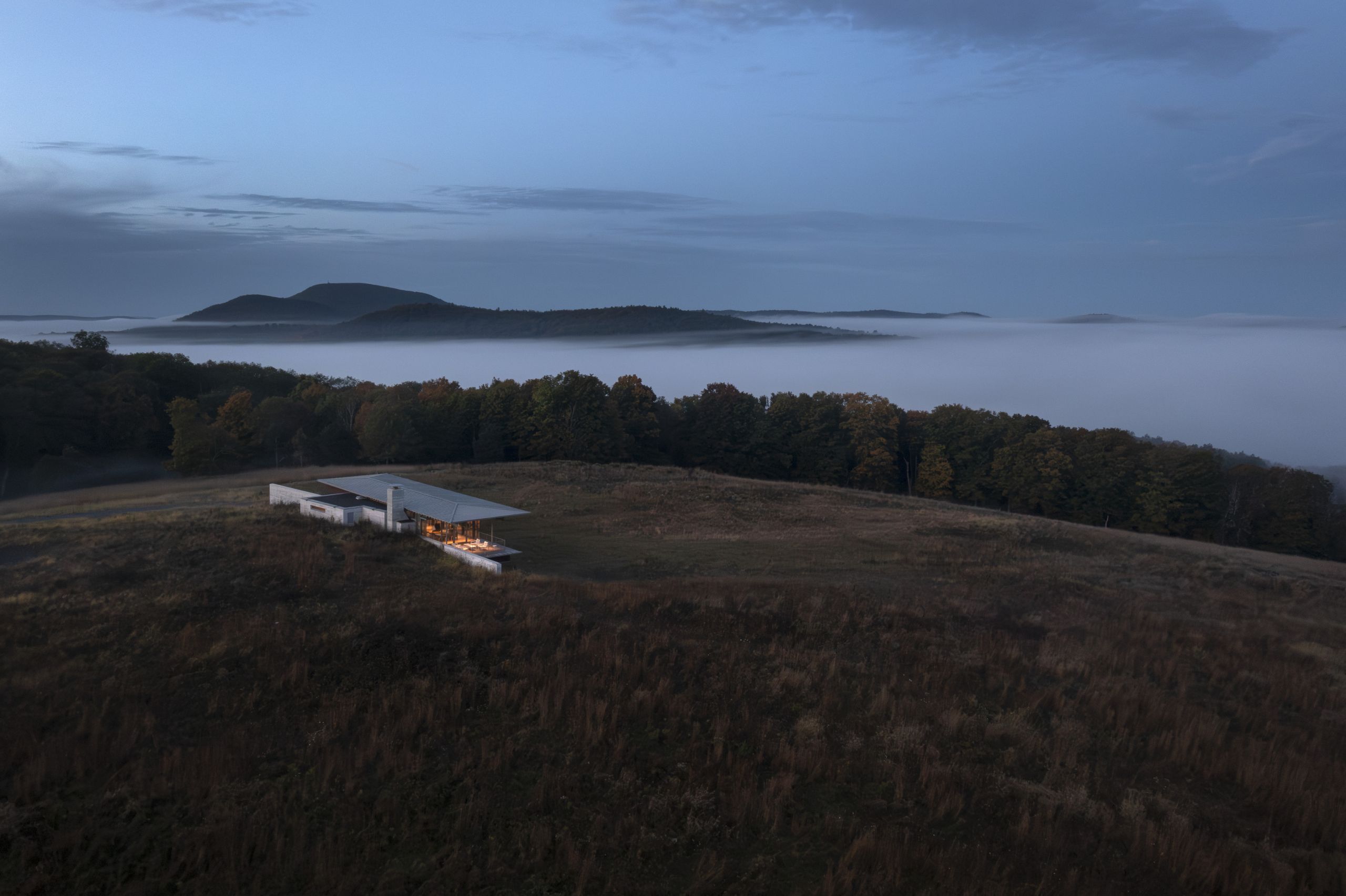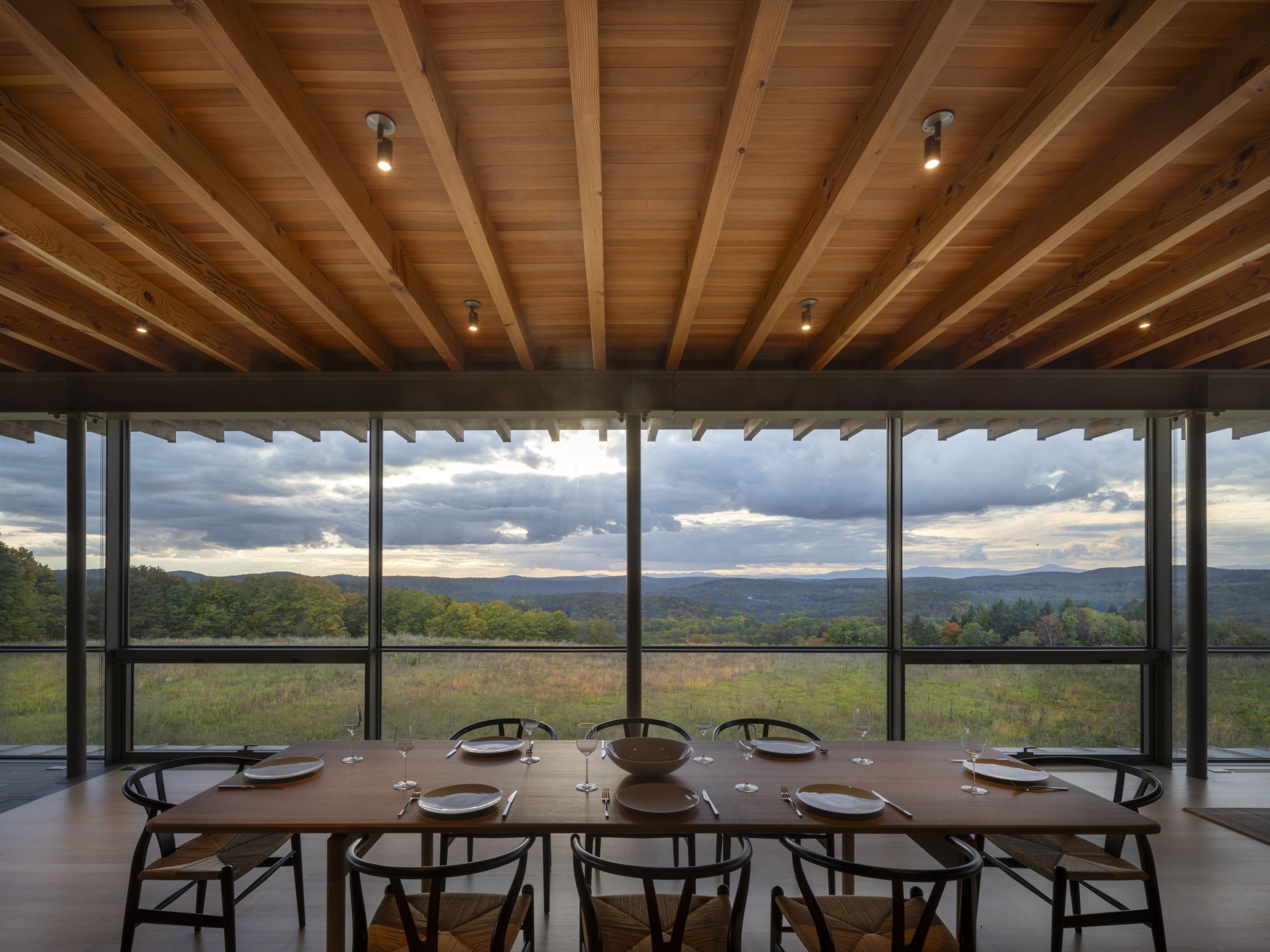 Situated at the top of a knoll in a large meadow, Gallatin Residence takes advantage of spectacular views west across the Hudson River Valley to the Catskills.